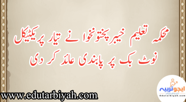 ویب ڈیسک ؛محکمہ تعلیم خیبر پختو نخوا نے تیار پریکٹیکل نوٹ بک پر پابندی لگا دی ہے۔